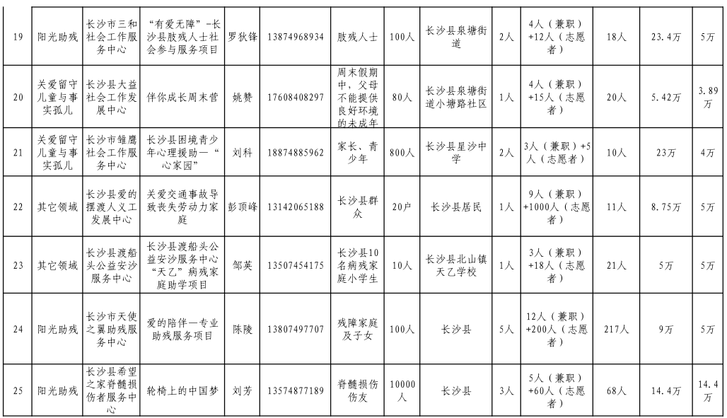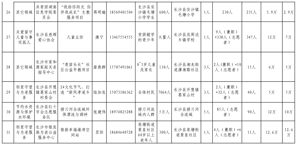 长沙县第三届“践行雷锋精神·共建文明家园”公益项目展评活动初赛入围名单公示表